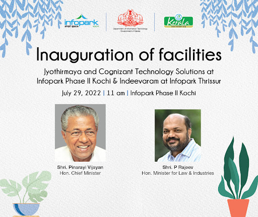 We are delighted to invite you to the inauguration of new IT Office Spaces at Infopark in a solemn function at Infopark, Kochi. This event signifies the commissioning of 3 brand new office spaces, including more than 1 Lakh square feet of Cognizant Technology Solutions, one of the leading Global IT Services Companies.